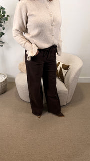 De donkerbruine kleur en de elegante wide leg fit geven deze jeans een luxe uitstraling 🤍