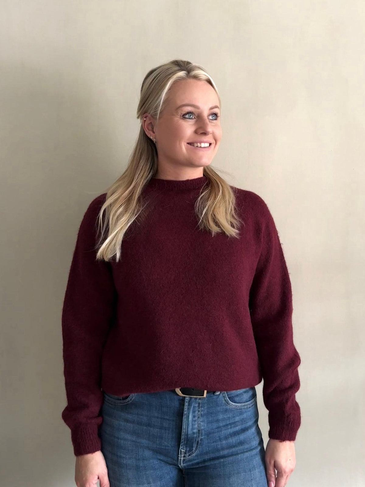 Maya – Ontdek Maya: een heerlijk zacht mohair truitje met lange mouwen, perfect voor cozy dagen ✨🧸. Verkrijgbaar in vier mooie kleuren – bordeaux, bruin, blauw en kaki – en makkelijk te combineren met rokken, broeken of onze satijnen Livia-rokjes voor een stijlvolle, meisjesachtige look 💖🍂.